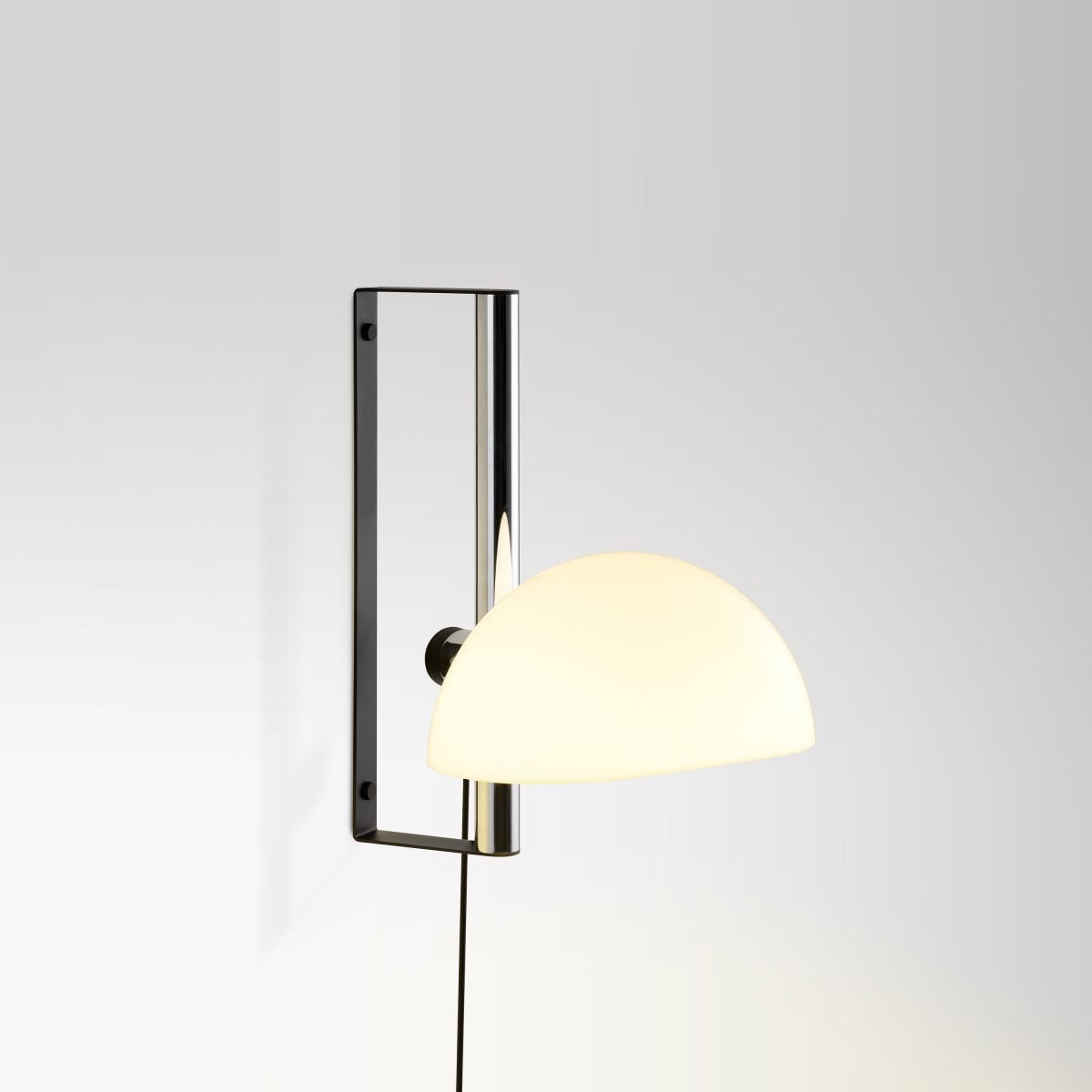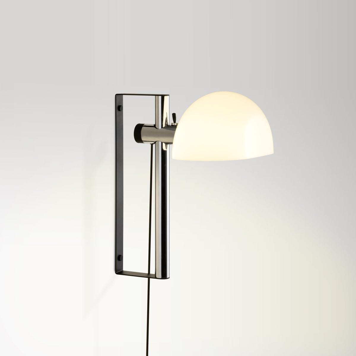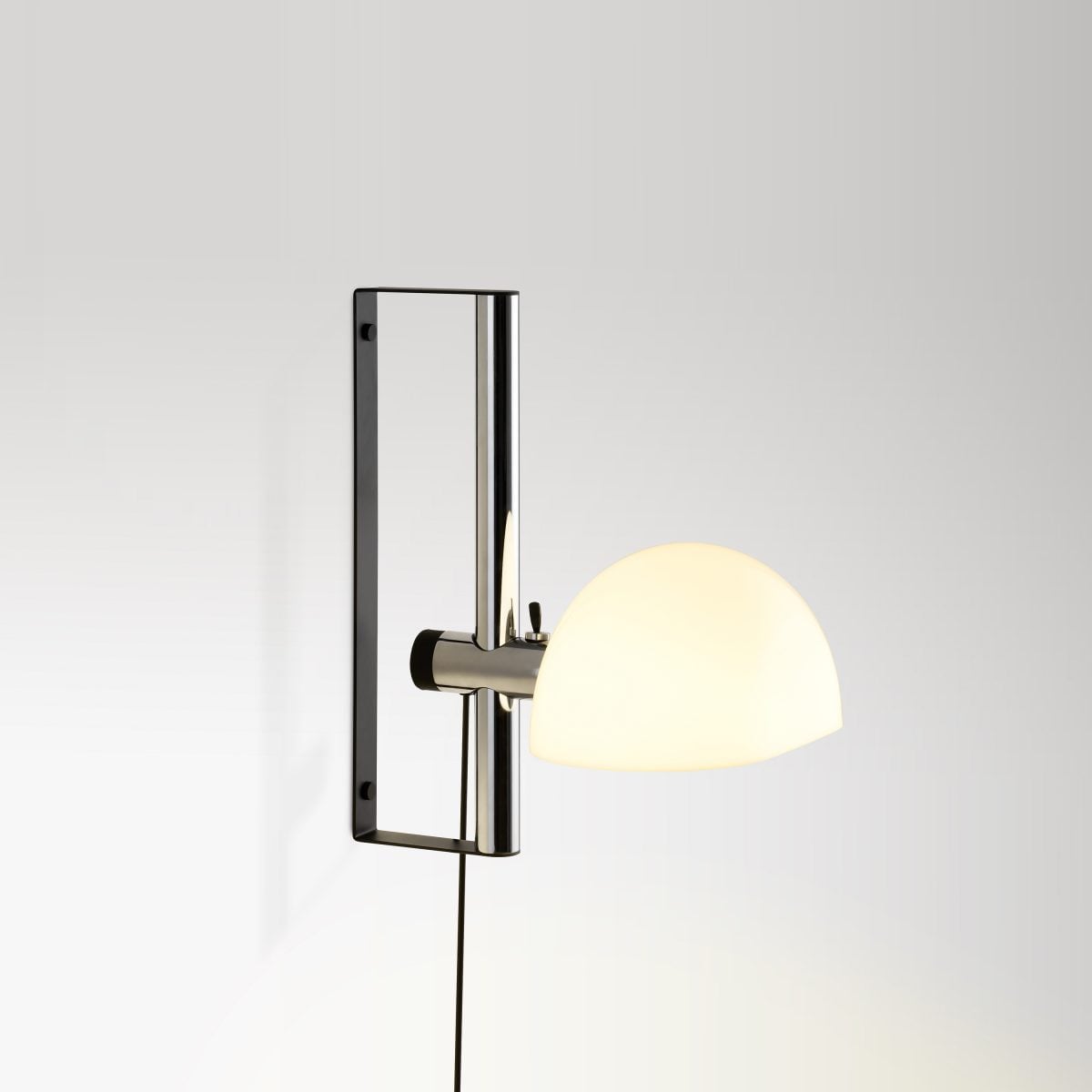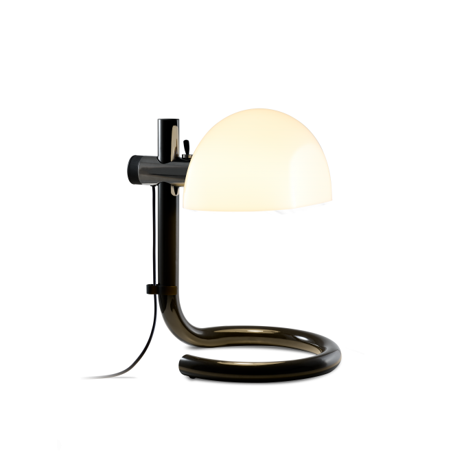 This design brings together the past and the present. Its reissue is faithful to the original: the base and the stem, available in chrome or charcoal, are made from steel, a material difficult to shape, typical of the industry at that time. In the 1970s, being able to bend steel was innovative, a huge challenge, and it still is today. That’s why Lauro is also a contemporary design because it highlights the achievements of half a century ago. Its methacrylate shade is available in translucent opal projecting a diffuse light, or in two-layer black to provide direct illumination.