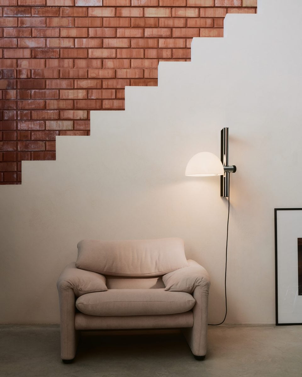 As in the original collection, it’s available in a table version of 41 cms high and with a base of 38 cms, and floor lamp edition with the same base and 135 cms high, and now a wall lamp version of 50 cms high has also been added. In all these versions, the shade can be positioned to direct the light by rotating it and adjusting its height along the support. In terms of lighting, Lauro once again emphasises appearance and, emulating lamps from the past, it works with a light bulb, in this case an LED.
