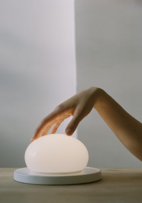 The design beckons you to touch it to adjust it. Its structure consists of a round surface that houses a LED located on a central axis and an overlapping glass sphere that, when moved, dims or boosts the light. The idea of Florian and Sebastian at the kaschkasch studio was to design a lamp, in which the dimming process was mechanical and not electronic. Bolita seeks out that user interaction, bringing back the sense of touch