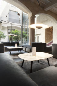 Creating a warm, comfortable indoor atmosphere in an outdoor space. This is the aim of Cala, a highly decorative light with a structure which draws on the simplicity of metal café tables or the classic painter’s trestle.
