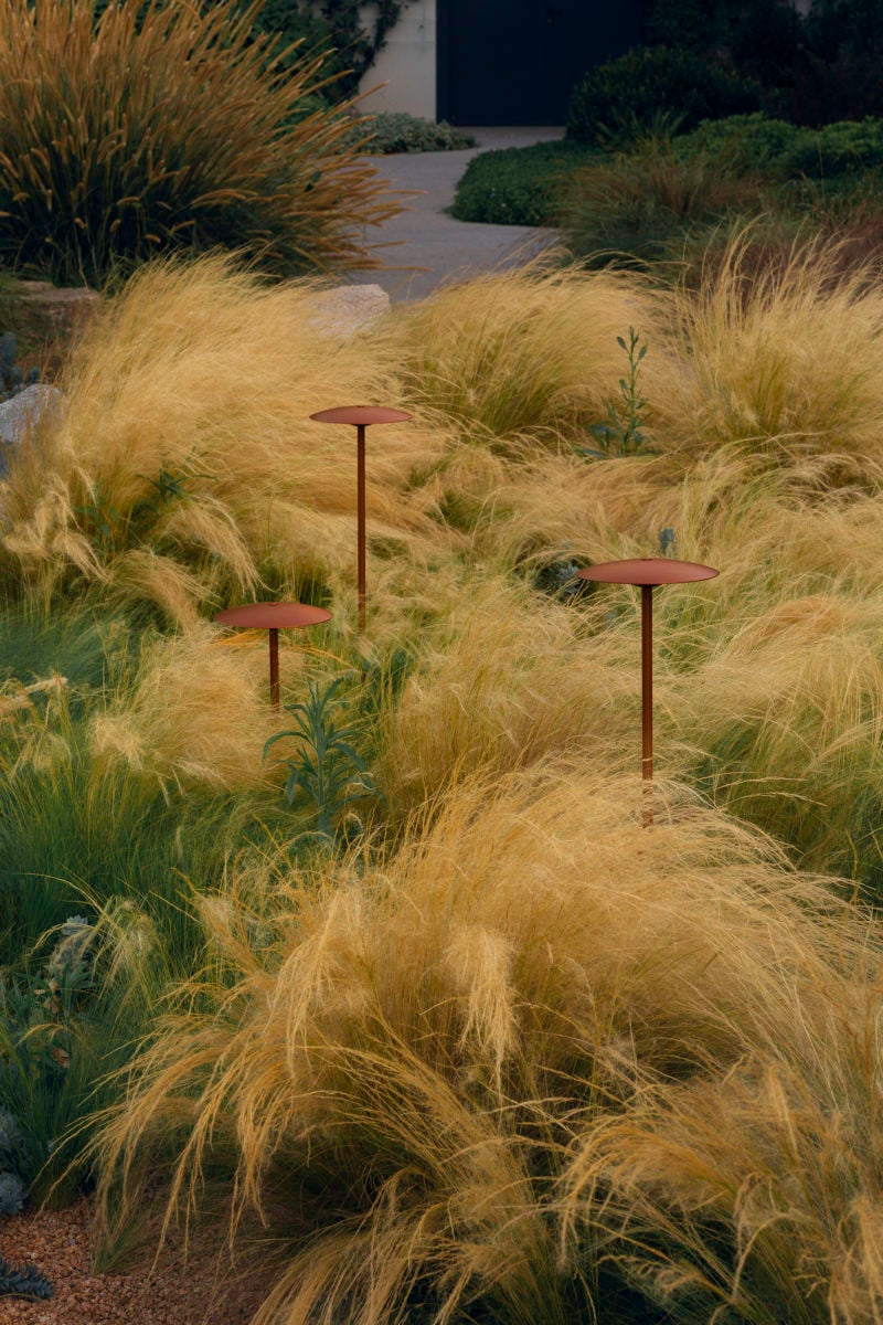 The Ginger collection has moved outdoors, with a series of wall sconces, including a new 15 cm sconce—perfect for passageways and small outdoor areas—a lamppost, and small bollard lamps. This year, the collection adds a larger bollard lamp in 32 cm, raised by means of a post that can be buried in dirt or gravel, that’s perfect for illuminating pathways, gardens, terraces, and walls, and blending nicely with vegetation.