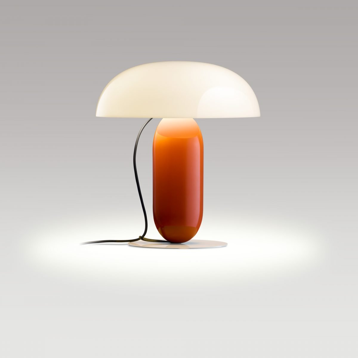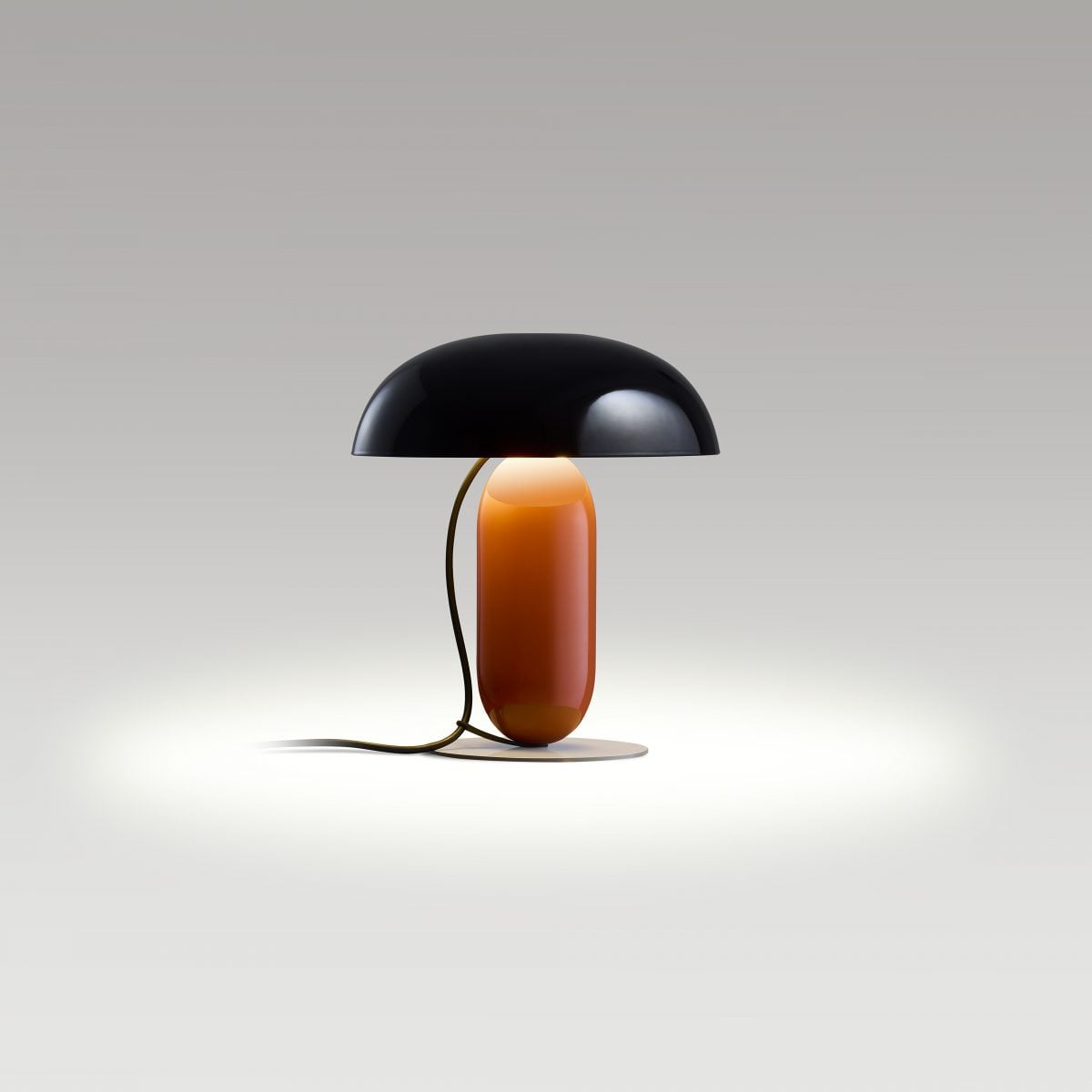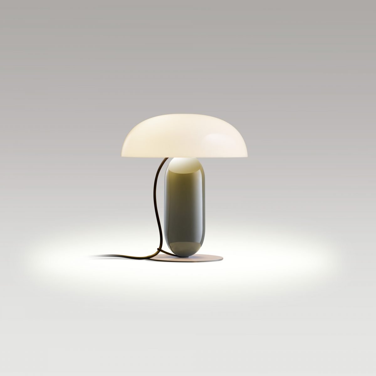 Gambosa es una renovada lámpara de mesa, cercana y reconocida por su tipología, y sorpresiva por sus formas y colores contemporáneos.