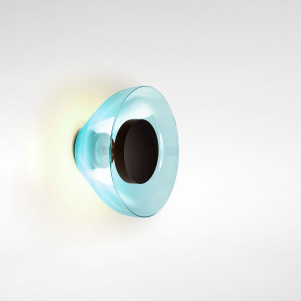 Es un diseño emocional, por lo que el vidrio significa en la memoria colectiva, y un diseño racional y contemporáneo, porque se sirve de la tecnología LED para conseguir eficiencia y que la fuente de luz no pese en el conjunto formal. El vidrio opal, transparente o de color de su pantalla permite que la luz bañe la pared y cree un efecto luminoso sin estridencias pero genera un punto de interés en el espacio.