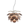 Exuberante, también cuando está apagada, la riqueza de luz que emite la lámpara Discocó procura una iluminación directa descendente y, al mismo tiempo, un efectista juego de luces y suaves sombreados.
