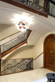 Su detallado estudio de la luz incidente y rebotada en ambas caras de los discos que la componen, da una atractiva graduación de matices lumínicos y profundidad a la pieza. La semiesfera cromada del núcleo, donde se anclan los discos, aporta reflejos suplementarios. Apagada la lámpara preserva su atractiva presencia, sugiriendo esa expansión de energía que cobra todo el sentido al utilizarla.
