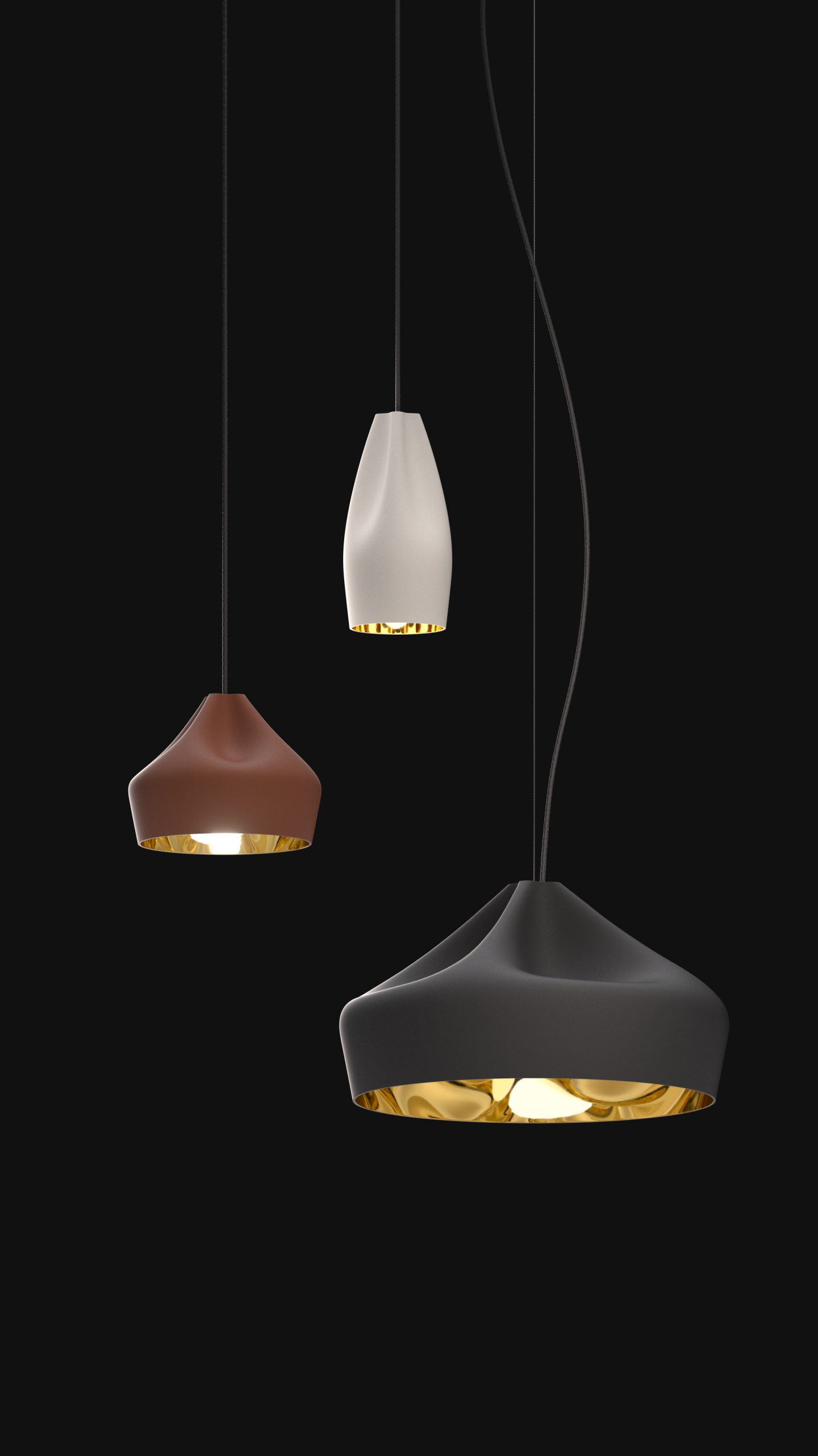 Ceramic is a ductile, malleable material, and every lamp in the collection is handcrafted. Fusing the clay with different enamels has allowed Xavier Mañosa to discover and interpret new light effects. He has gone as far as to play with two different finishes on the inside of the lamp: a brilliant white enamel to create sparkles that enhance the light, and a 24-carat gold plated version that emits extraordinarily warm lighting.